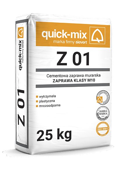 Zaprawa Z 01 doskonale sprawdza się w wypełnianiu szczelin oraz bruzd po pracach instalacyjnych, jak również w tynkowaniu ręcznym i wykonywaniu faset w strefie połączeń ławy i ściany fundamentowej. Jej zużycie wynosi około 45 kg/m² dla muru o grubości 12 cm lub 100 kg/m² dla muru o grubości 25 cm, co zapewnia efektywność i oszczędność przy realizacji projektów budowlanych. Idealna do pracy zarówno wewnątrz, jak i na zewnątrz.